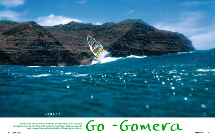 Vargas is not my thing: desolate terrain, unclean waves, fringed by a beach with horrible pebbles and a shorebreak that breaks the bones of even the worldcuppers before they are battered by the brutal wind. It is April 2003 on Gran Canaria. The first stage of the World Cup is a total failure. I've actually come to photograph the action. Instead, I drown my boredom in black coffee in the well-worn van of Barth, a Belgian waverider who has lived in El Medano on Tenerife for decades. Next to us, Jonas Ceballos, Dario Ojeda and his friend, whose name I don't even know yet, are also sipping the black drug. I'm daydreaming absently about spots with turquoise water when the provocative question slips past my lips: "Is there a spot on Gomera?"
