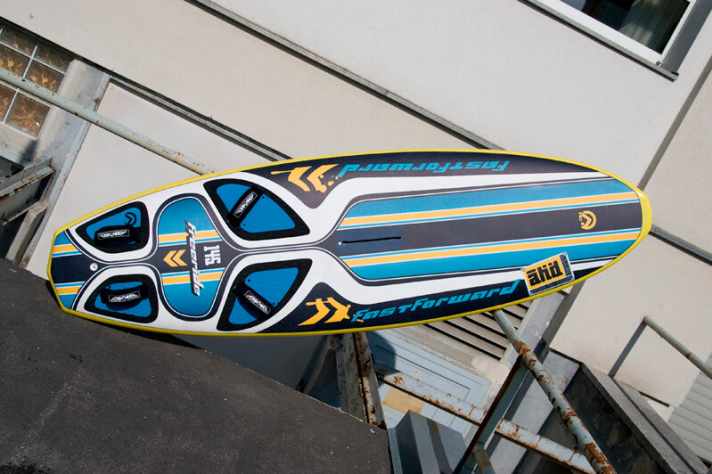 We recommend the board to heavy planing beginners who are looking for a light, voluminous board. According to our measurements, there are almost 160 litres under the bright yellow shell - a large part of which is also in the tail, which offers a lot of lift in the jibe and helps with gliding through rather wide turns. Tight power jibes, on the other hand, are hardly possible.