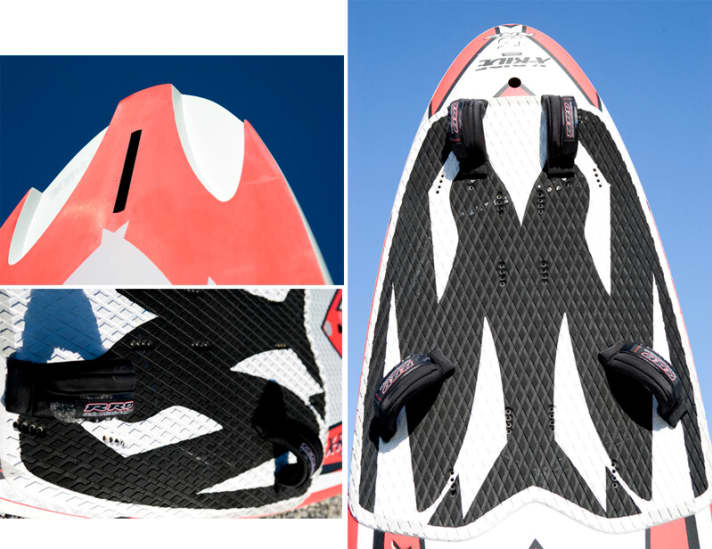 On the other hand, no board is more stable in tipping, none is better damped in choppy water, none reacts more calmly to small load errors in the jibe. Perhaps the RRD doesn't race off like some of the sports cannons and doesn't hang quite as freely on the foot, doesn't quite reach the maximum top speed when fully utilised. On the other hand, even with an overpowered sail, you can simply hold on endlessly, the board certainly doesn't fidget. And when jibing, it is extremely stable on the edge and glides well - freerider, what more could you want?