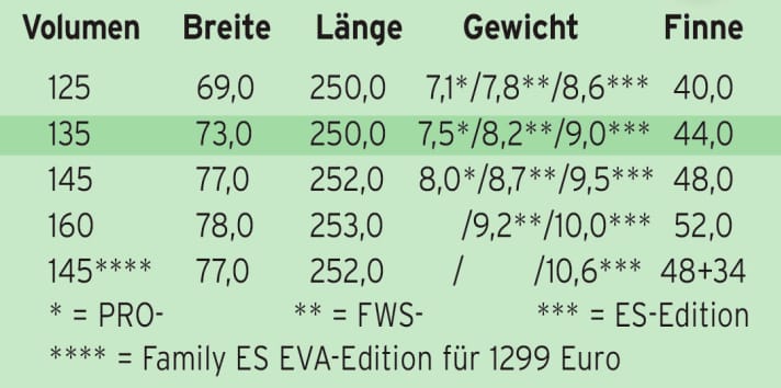 surf measurement: Weight: 8,14 kgLength: 250.0 cmWidth: 72,5 cmFinJP Freeride WL 44 cm/Powerbox/GFK
