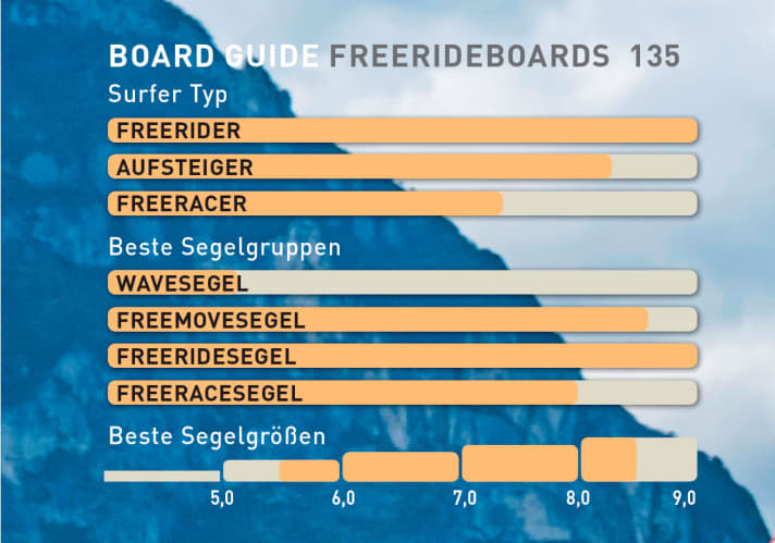 The term "freeride", on the other hand, is used in the surf shop for models that are sporty but also very suitable for intermediates, right through to boards that consequently don't even have the strap positions for newcomers to the planing league and are consistently designed for performance-orientated windsurfing. It's as if you put a soft all-round ski next to a poisonous race carver - with the recommendation "just take any one".
