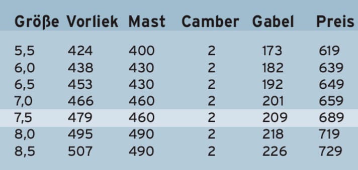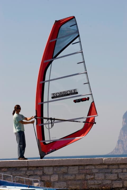 On the water: The V6 feels direct, a little racy and very light, it already works with a neutral clew in a very wide wind range. Despite the direct feel, the rig can be pumped well and the obviously aerodynamically efficient profile "loads up" well even in light winds. This gives the V6 a minimal advantage under the otherwise very closely spaced sails immediately after planing and in gusty winds. Even when not planing, the sail is agile, can be moved with little force and the camber rotates in the jibe without excessive jerking.
