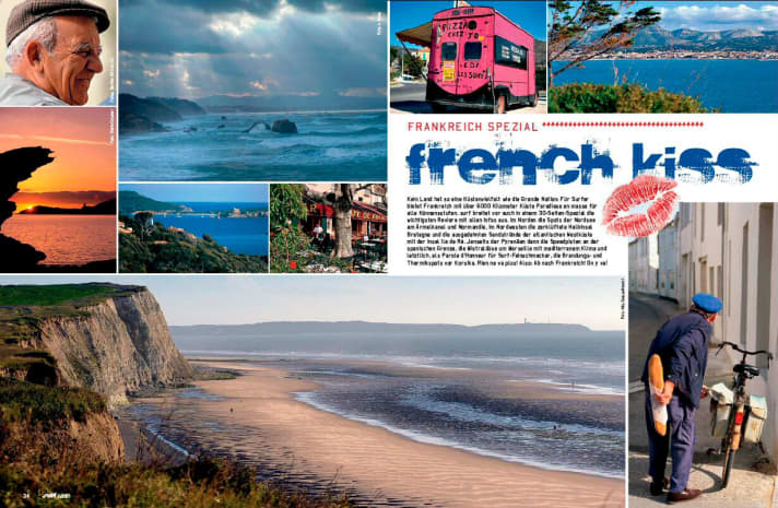 Im Norden die Spots der Nordsee am Ärmelkanal und Normandie, im Nordwesten die zerklüftete Halbinsel Bretagne und die ausgedehnten Sandstrände der atlantischen Westküste mit der Insel Ile de Ré. Jenseits der Pyrenäen dann die Speedpisten an der spanischen Grenze, die Mistraldüse um Marseille mit mediterranem Klima und letztlich, als Parole d’Honneur für Surf-Feinschmecker, die Brandungs- und Thermikspots vor Korsika. Rien ne va plus! Also: Ab nach Frankreich! On y va!