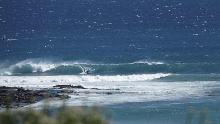 In Elands Bay entwickelt sich an sonnigen, warmen (!) Tagen eine lokale Thermik, diese setzt zur Mittagszeit ein und weht sideshore bis leicht sideoffshore. Geparkt werden kann direkt am Strand. Bei kleinem Swell bietet der Beachbreak kernige Sections, bricht aber auf Sand. Sobald die Setwellen über logohoch werden, beginnt der Pointbreak vor der Küste zu brechen. An den besten Tagen verbindet sich dieser mit dem Pointbreak am linken Ende der Bucht – draußen gibt’s dann monströse Sets und weiter innen spiegelglatte Lines für mehrere Turns. Wichtig: Gebt auf die Wellenreiter Acht und zeigt Respekt! An den großen Tagen betreibt der Beachbreak bereits beim Einstieg eine natürliche Selektion. In Elands Bay gibt es etwas Infrastruktur und sogar einen kleinen Campingplatz.