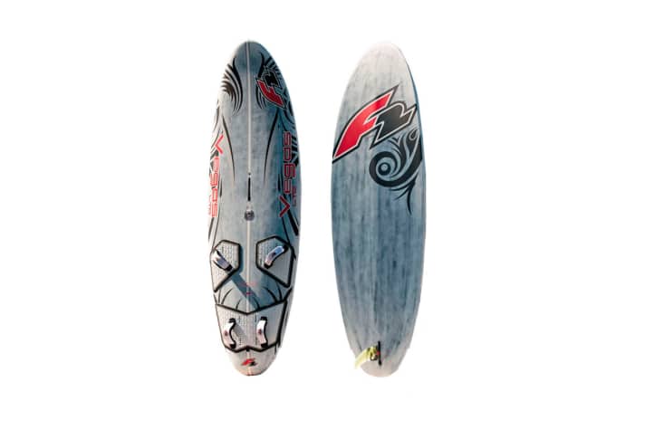 Auf dem Wasser: Der F2 Vegas trifft beim Thema Freeride den Nagel auf den Kopf: Auch wenn der F2 in bestimmten Teildisziplinen, beispielsweise beim Top-Speed und Angleiten, so manchem Konkurrenten den Vortritt lassen muss, macht das Brett dies durch hervorragende Kontrolle bei Starkwind und das einfache Handling wieder wett. Zu keinem Zeitpunkt hat man das Gefühl, dass der Vegas Dinge tut, die man nicht möchte. Der Bug bleibt auch in starken Böen immer unten, ohne dass man als ambitionierter Windsurfer das Gefühl hat, der F2 wäre langweilig oder gar langsam. Diese easy-going Charakteristik setzt sich auch in der Halse nahtlos fort: Zwar benötigt das Brett etwas mehr Fußdruck, läuft dann jedoch wie auf Schienen durch mittlere und weite Radien – ideale Voraussetzungen, um die Halsenquote nach oben zu treiben. Auch dem guten Fahrer macht der F2 Spaß, weil er gut carvt und mit viel Speed aus der Halse herauskommt.