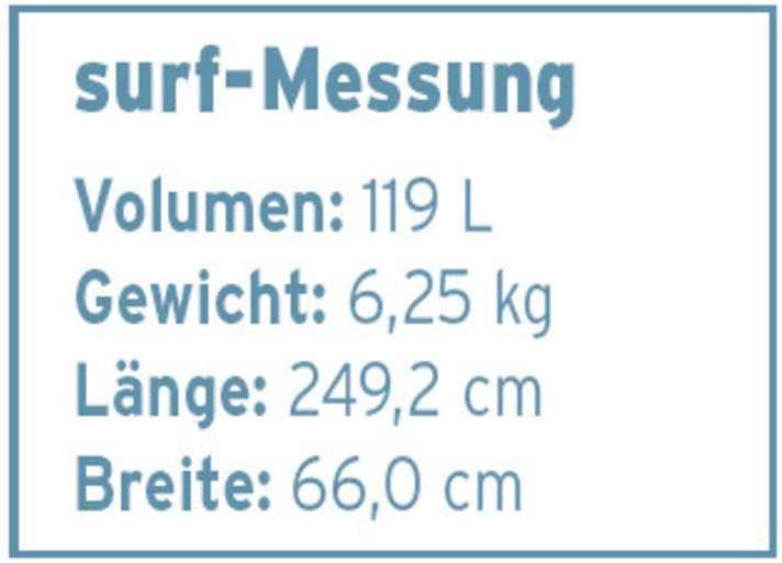 An Land: Der Hawk in LTD-Bauweise kommt in einem Hammer-Gewicht (6,25 Kilo), das laut Fanatic dem aktuellen Stand der Serie entspricht. Das Board zeigt im Deckshape viel Scoop, hat ein schmales Heck und schmalen Bug. Schlaufenpositionen finden sich für jeden Anspruch. Der Shape ist als planes V gehalten mit recht kurzer Gleitfläche.