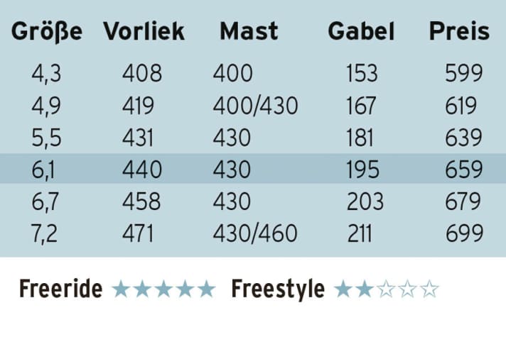 surf-Messung Segelgewicht: 4,16 kg Mastgewicht: 2,26 kg